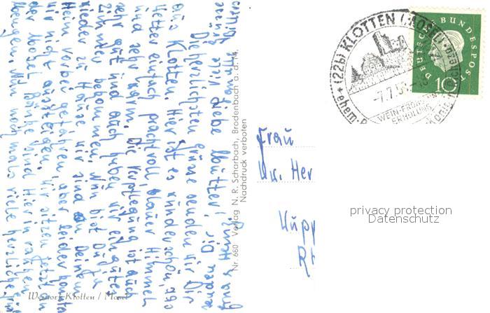 73035548 alte Postkarte Klotten Fliegeraufnahme postalisch gelaufen Erhaltung siehe scans [KathaD81] KatCode: 11110007135049