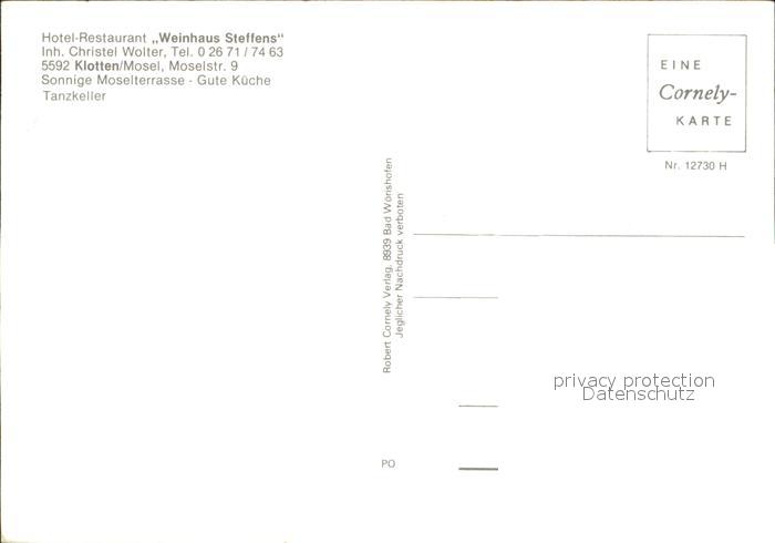 72271410 Klotten Hotel Restaurant Weinhaus Steffens Terrasse postalisch nicht gelaufen Erhaltung siehe scans KatCode: 11110007135049