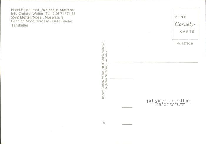 72273101 Klotten Hotel-Restaurant Weinhaus Steffens postalisch nicht gelaufen Erhaltung siehe scans KatCode: 11110007135049