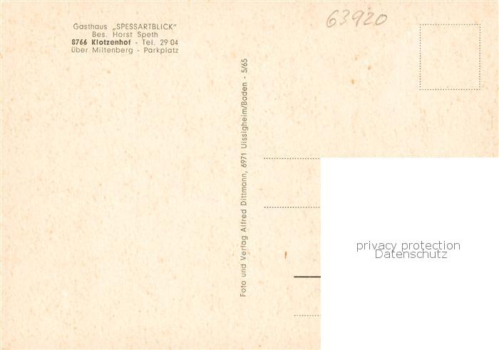 73854375 Klotzenhof Kloster Engelberg Gasthaus zum Spessartblick Gastraum postalisch nicht gelaufen Erhaltung siehe scans [FriedD77] KatCode: 11110008136042