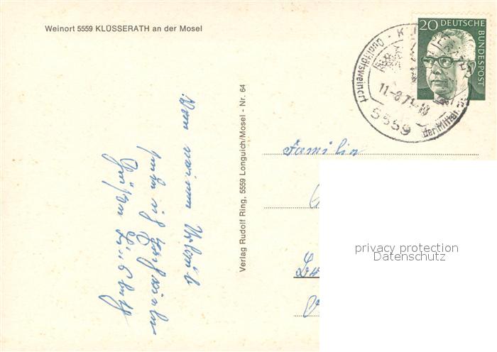 73680381 alte Postkarte Kluesserath Panorama Weinort an der Mosel Campingplatz Salmtal postalisch gelaufen Erhaltung siehe scans [FriedD77] KatCode: 11110007235063