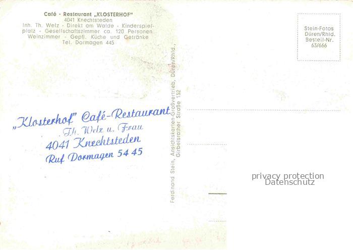 74007290 Knechtsteden Dormagen NRW Café Restaurant Klosterhof postalisch nicht gelaufen Erhaltung siehe scans [FriedD77] KatCode: 11110005162004