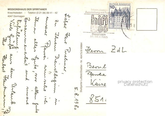 73742807 alte Postkarte Knechtsteden Missionshaus der Spiritaner Fliegeraufnahme postalisch gelaufen Erhaltung siehe scans [WerneD78] KatCode: 11110005162004