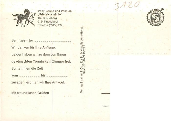 73873939 Knesebeck Wittingen Pony-Gestuet und Pension Friedrichsmuehle Pferdekoppel Landschaftspanorama postalisch nicht gelaufen Erhaltung siehe scans [FriedD77] KatCode: 11110003151040