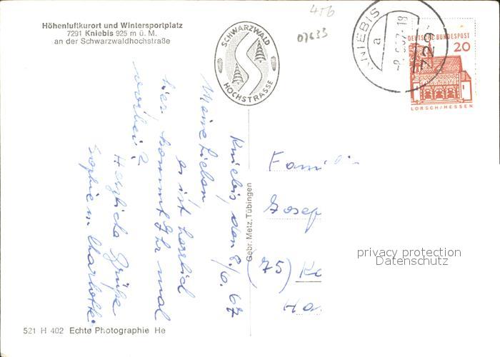 72362588 alte Postkarte Kniebis Freudenstadt postalisch gelaufen Erhaltung siehe scans KatCode: 11110008237028