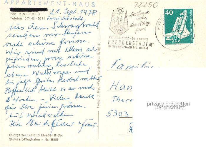 73321835 alte Postkarte Kniebis Freudenstadt Fliegeraufnahme postalisch gelaufen Erhaltung siehe scans [KathaD81] KatCode: 11110008237028