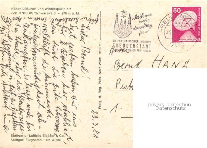 73165437 alte Postkarte Kniebis Freudenstadt Fliegeraufnahme postalisch gelaufen Erhaltung siehe scans [KathaD81] KatCode: 11110008237028