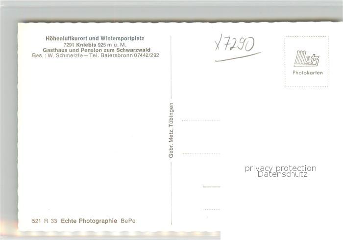 43277144 Kniebis Freudenstadt Gasthaus Pension zum Schwarzwald postalisch nicht gelaufen Erhaltung siehe scans [FriedD77] KatCode: 11110008237028