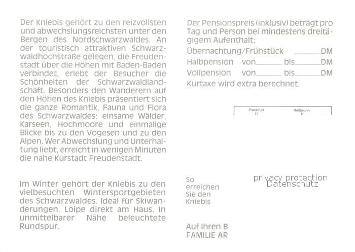 73162546 Kniebis Freudenstadt Gasthof Cafe Pension Waldeck im Winter postalisch nicht gelaufen Werbekarte (keine Postkarte) Erhaltung siehe scans [FriedD77] KatCode: 11110008237028