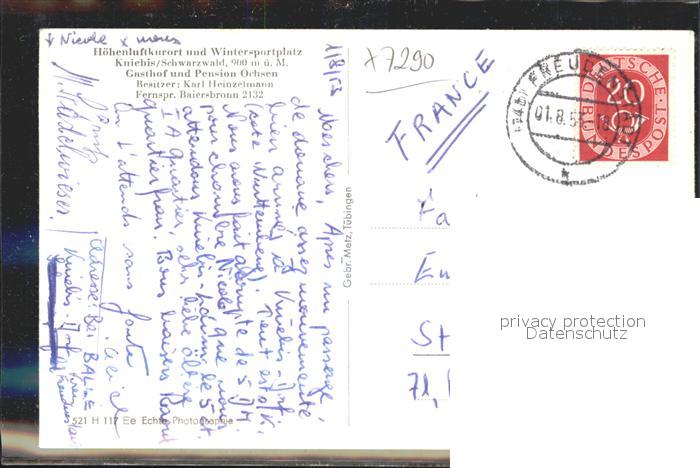 41801515 alte Postkarte Kniebis Freudenstadt Gasthof Pension Ochsen postalisch gelaufen Erhaltung siehe scans KatCode: 11110008237028