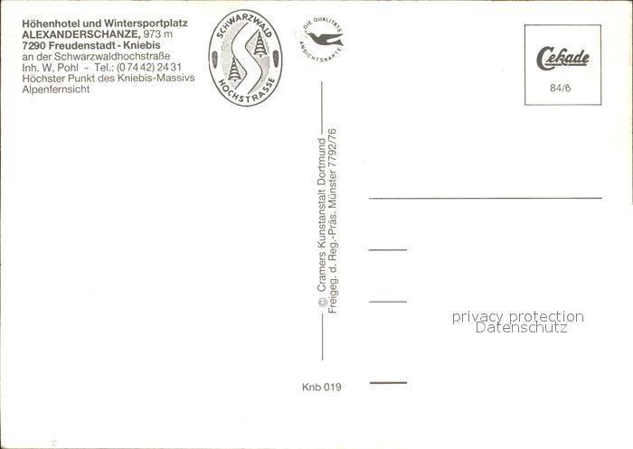 72289436 Kniebis Freudenstadt Hoehenhotel Alexanderschanze postalisch nicht gelaufen Erhaltung siehe scans KatCode: 11110008237028