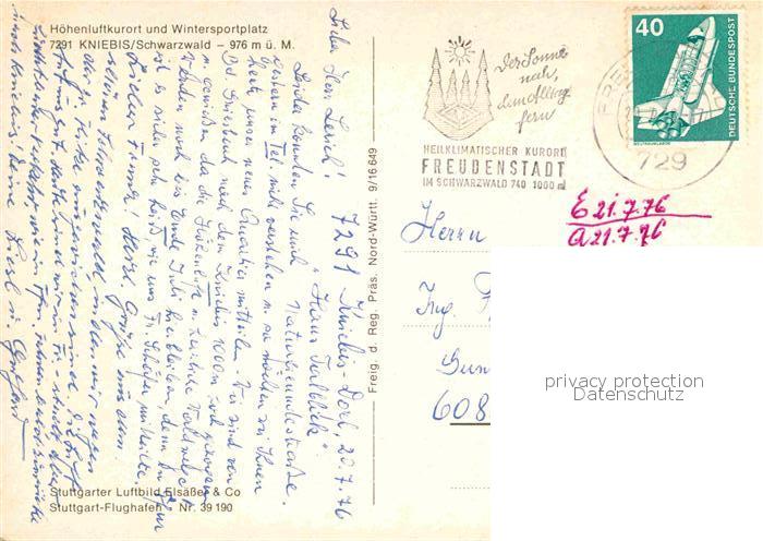 72833707 alte Postkarte Kniebis Freudenstadt Hoehenluftkurort Wintersportplatz Schwarzwald Fliegeraufnahme postalisch gelaufen Erhaltung siehe scans [FriedD77] KatCode: 11110008237028