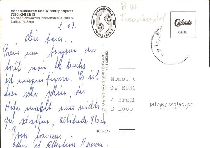 72050419 alte Postkarte Kniebis Freudenstadt Hoehenluftkurort Wintersportplatz Schwarzwaldhochstrasse Fliegeraufnahme postalisch gelaufen Erhaltung siehe scans KatCode: 11110008237028