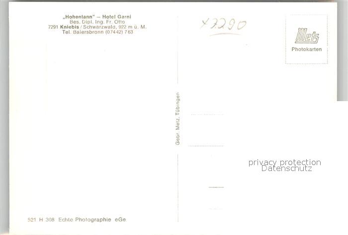 43273443 Kniebis Freudenstadt Hotel Garni Hohentann postalisch nicht gelaufen Erhaltung siehe scans [KathaD81] KatCode: 11110008237028