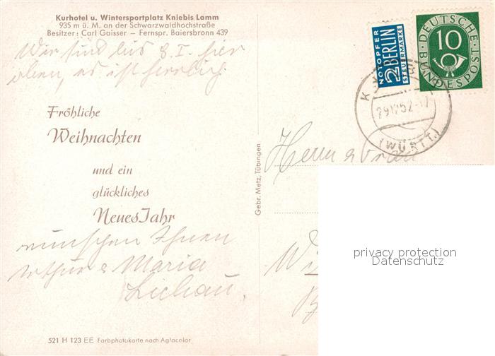 73599195 alte Postkarte Kniebis Freudenstadt Kurhotel Lamm postalisch gelaufen Erhaltung siehe scans [PaolaD17] KatCode: 11110008237028