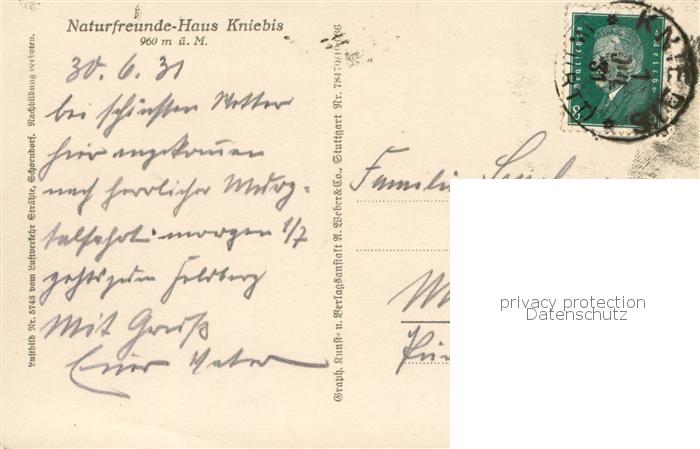 73775750 alte Postkarte Kniebis Freudenstadt Naturfreundehaus Schwarzwald postalisch gelaufen Fliegeraufnahme Erhaltung siehe scans [FriedD77] KatCode: 11110008237028