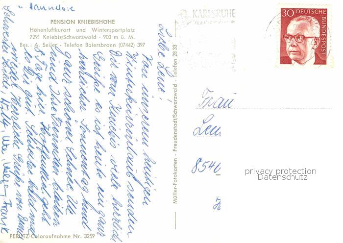 72790478 alte Postkarte Kniebis Freudenstadt Pension Kniebish?he postalisch gelaufen Erhaltung siehe scans [LiesaD40] KatCode: 11110008237028