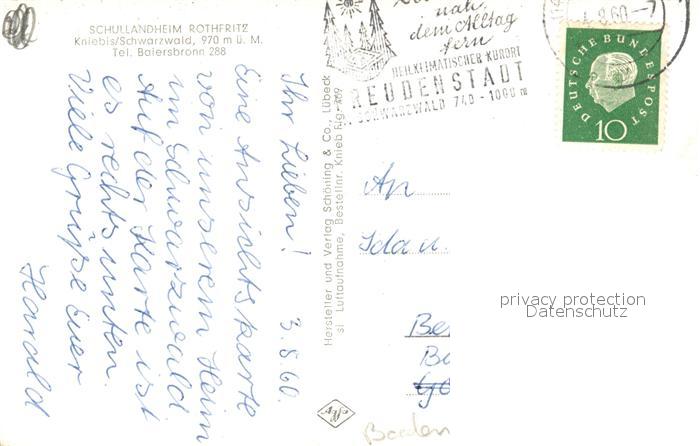 43504868 alte Postkarte Kniebis Freudenstadt Schullandheim Rothfritz postalisch gelaufen Erhaltung siehe scans [KathaD81] KatCode: 11110008237028