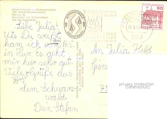 71913831 alte Postkarte Kniebis Freudenstadt Sporthotel Schwimmbad udn Sprungschanze postalisch gelaufen Erhaltung siehe scans KatCode: 11110008237028