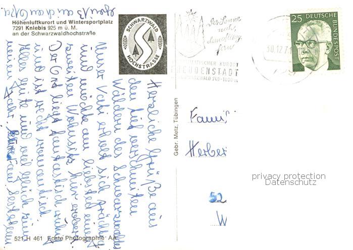 73769679 alte Postkarte Kniebis Freudenstadt Teilansicht Kurort an der Schwarzwaldhochstrasse im Winter postalisch gelaufen Erhaltung siehe scans [FriedD77] KatCode: 11110008237028
