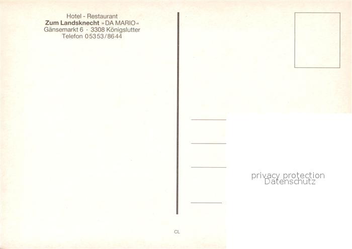 73570181 K?nigslutter Elm Hotel-Restaurant Zum Landsknecht Da Mario postalisch nicht gelaufen Erhaltung siehe scans [PaolaD17] KatCode: