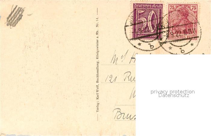 73571670 alte Postkarte K?nigswinter Drachenfels Rhein K?nstlerkarte postalisch gelaufen Erhaltung siehe scans [LiesaD40] KatCode: