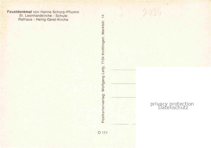 74054856 Knittlingen Enzkreis BW Faustdenkmal Kirche Schule Rathaus postalisch nicht gelaufen Erhaltung siehe scans [FriedD77] KatCode: 11110008236033