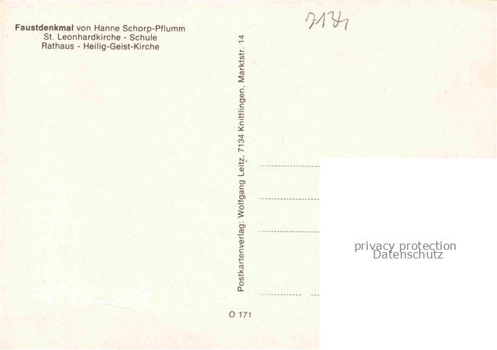74054738 Knittlingen Enzkreis BW St. Leonhardkirche Rathaus Faustdenkmal Schule Heilig-Geist-Kirche postalisch nicht gelaufen Erhaltung siehe scans [FriedD77] KatCode: 11110008236033
