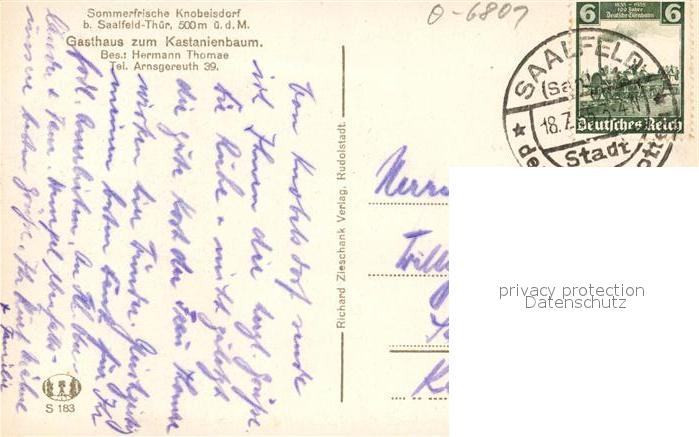 43353076 alte Postkarte Knobelsdorf Saalfeld Panorama postalisch gelaufen Erhaltung siehe scans [KathaD81] KatCode: 11110016073077