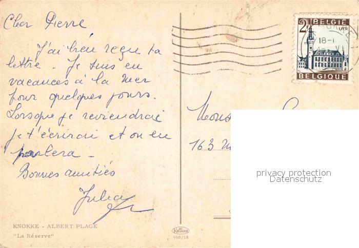 72912156 carte postale Knokke-Heist Albert Plage La Reserve postalisch gelaufen Erhaltung siehe scans [LiesaD40] KatCode: 11070031000330