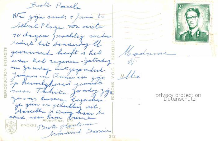 72908209 carte postale Knokke-Heist Albert Plage postalisch gelaufen Erhaltung siehe scans [LiesaD40] KatCode: 11070031000330