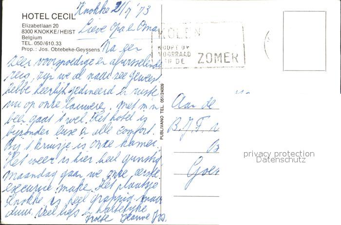 72290096 carte postale Knokke-Heist Hotel Cecil postalisch gelaufen Erhaltung siehe scans KatCode: 11070031000330