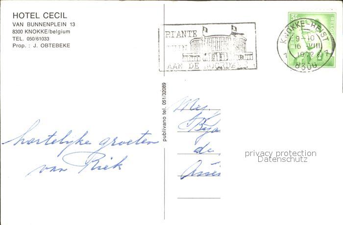 72455803 carte postale Knokke-Heist Hotel Cecil postalisch gelaufen Erhaltung siehe scans KatCode: 11070031000330