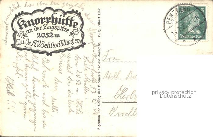 41621011 alte Postkarte Knorrhuette an der Zugspitze Wettersteingebirge postalisch gelaufen Erhaltung siehe scans KatCode: 11110009180117
