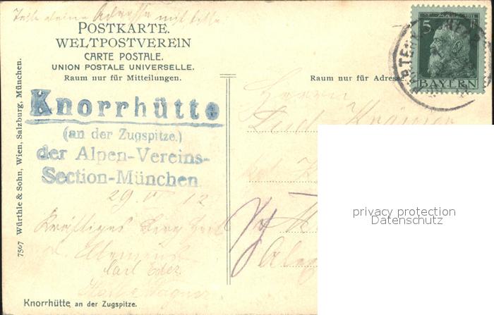 71861705 alte Postkarte Knorrhuette Berghuette Wettersteingebirge postalisch gelaufen Erhaltung siehe scans KatCode: 11110009180117