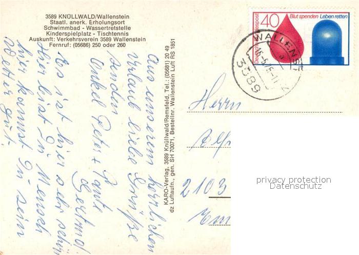 73009266 alte Postkarte Knuellwald Fliegeraufnahme mit Schwimmbad postalisch gelaufen Erhaltung siehe scans [WerneD78] KatCode: 11110006634011