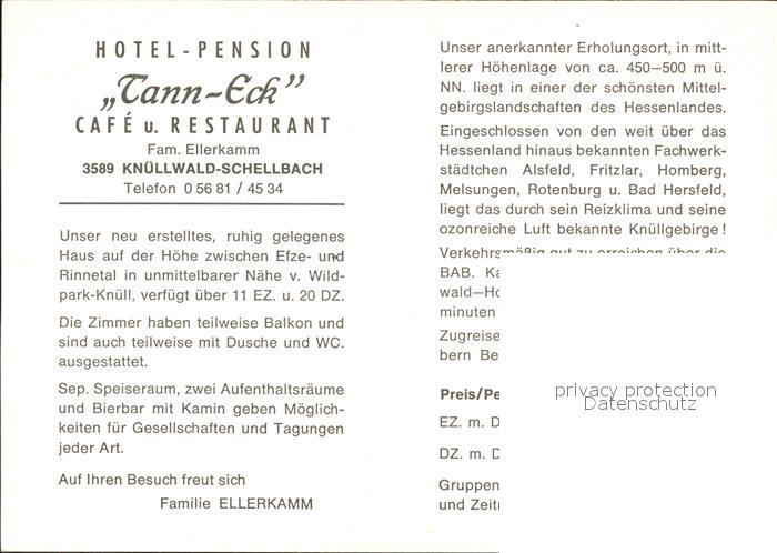 71993289 Knuellwald Hotel Pension Tann-Eck Restaurant postalisch nicht gelaufen Werbekarte (keine Postkarte) Erhaltung siehe scans KatCode: 11110006634011