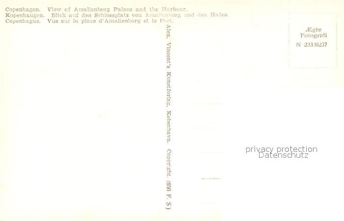Kobenhavn Amalienberg Slotsplads postalisch nicht gelaufen Erhaltung siehe scans [KathaD81]