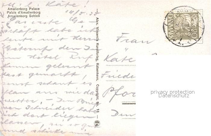 old postcard Kobenhavn Amalienborg Schloss postalisch gelaufen Erhaltung siehe scans [KathaD81]