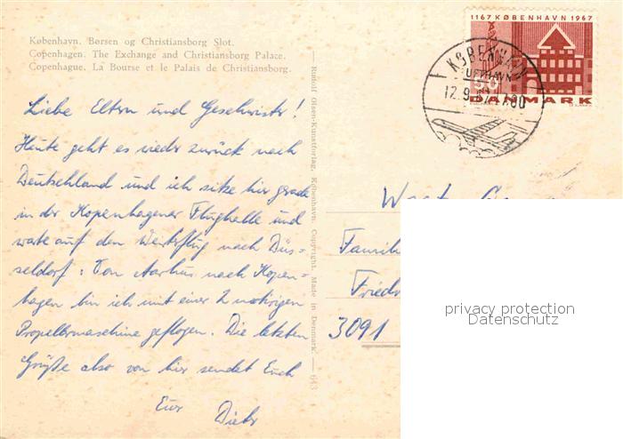 old postcard Kobenhavn Borsen og Christiansborg Slot postalisch gelaufen Erhaltung siehe scans [WerneD78]