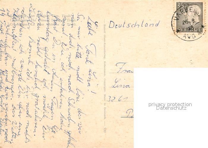 old postcard Kobenhavn Det kinesiske Tarn Tivoli postalisch gelaufen Erhaltung siehe scans [WerneD78]