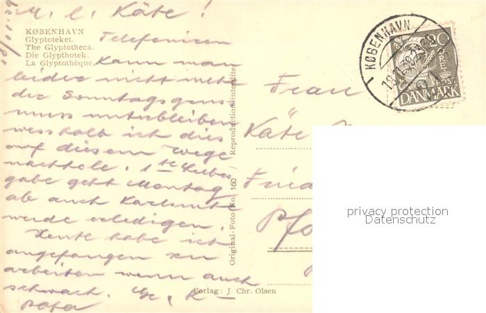 old postcard Kobenhavn Glyptoteket postalisch gelaufen Erhaltung siehe scans [KathaD81]