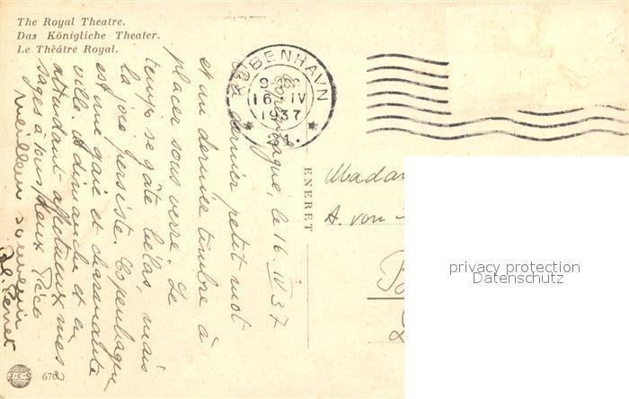 old postcard Kobenhavn Koenigliches Theater postalisch gelaufen Erhaltung siehe scans [KathaD81]