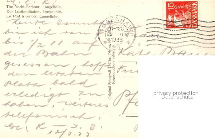 old postcard Kobenhavn Lystbaadehavnen postalisch gelaufen Erhaltung siehe scans [KathaD81]
