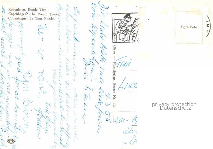 old postcard Kobenhavn Runde Tarn Runder Turm postalisch gelaufen Erhaltung siehe scans [FriedD77]