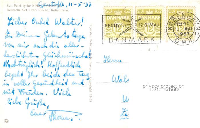old postcard Kobenhavn Sanct Petri Kirke postalisch gelaufen Erhaltung siehe scans [KathaD81]