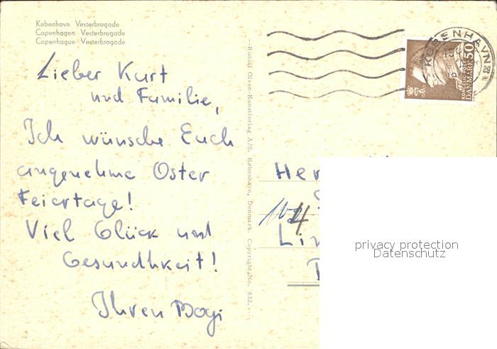 old postcard Kobenhavn Vesterbrogade postalisch gelaufen Erhaltung siehe scans