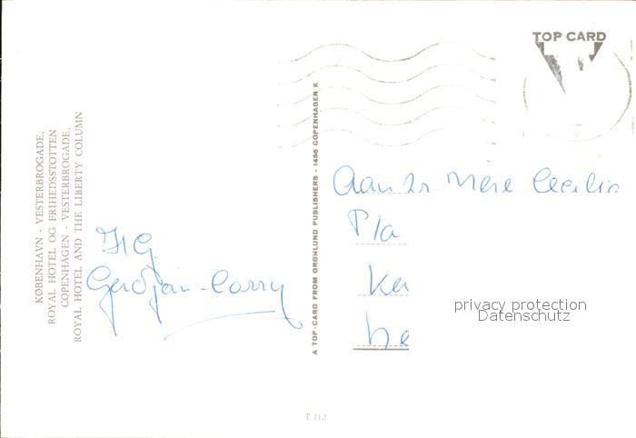 old postcard Kobenhavn Vesterbrogade Royal Hotel og Frihedsstotten postalisch gelaufen Erhaltung siehe scans