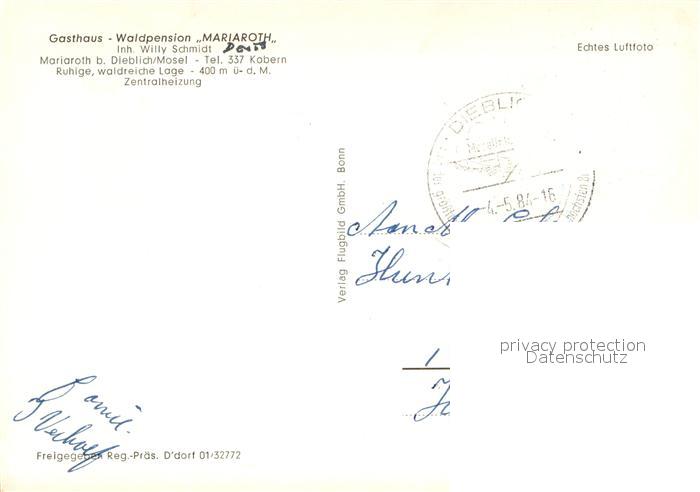 73663739 alte Postkarte Kobern-Gondorf Gasthaus Waldpension Mariaroth postalisch gelaufen Erhaltung siehe scans [LiesaD40] KatCode: 11110007137212