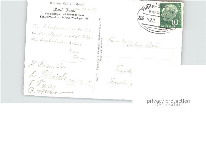 alte Postkarte Kobern-Gondorf Hotel Fuchs Moselpartie postalisch gelaufen Erhaltung siehe scans
